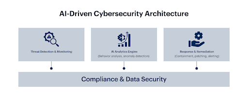 AI-powered threat intelligence and monitoring systems analyze network behavior, user activity, and endpoint data in real time, enabling automated detection, containment, and remediation of security threats.